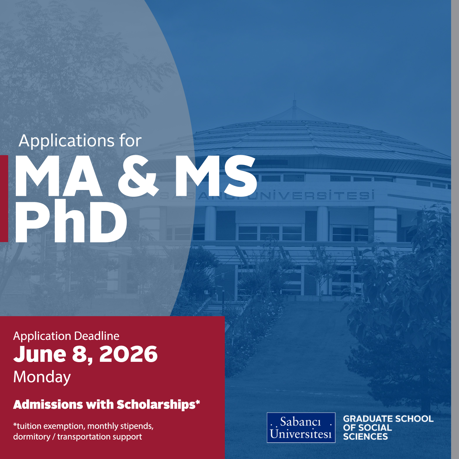 Please click here to view scholarship opportunities in detail for graduate programs at Sabancı University.